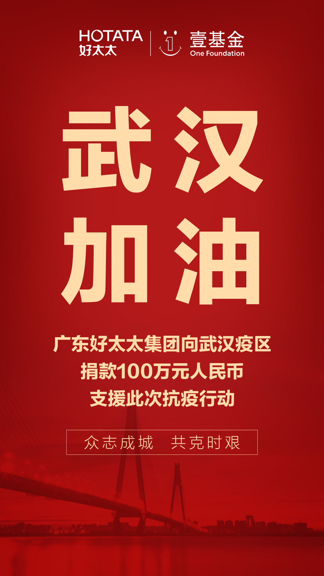 新型冠状病毒疫情天天都在变化,牵动着每一个中国人的心,疫情当前,举国抗击,乐鱼集团在行动!1月28日,乐鱼集团携手壹基金驰援武汉捐款100万,捐助款项将用于此次肺炎防控的相关措施。