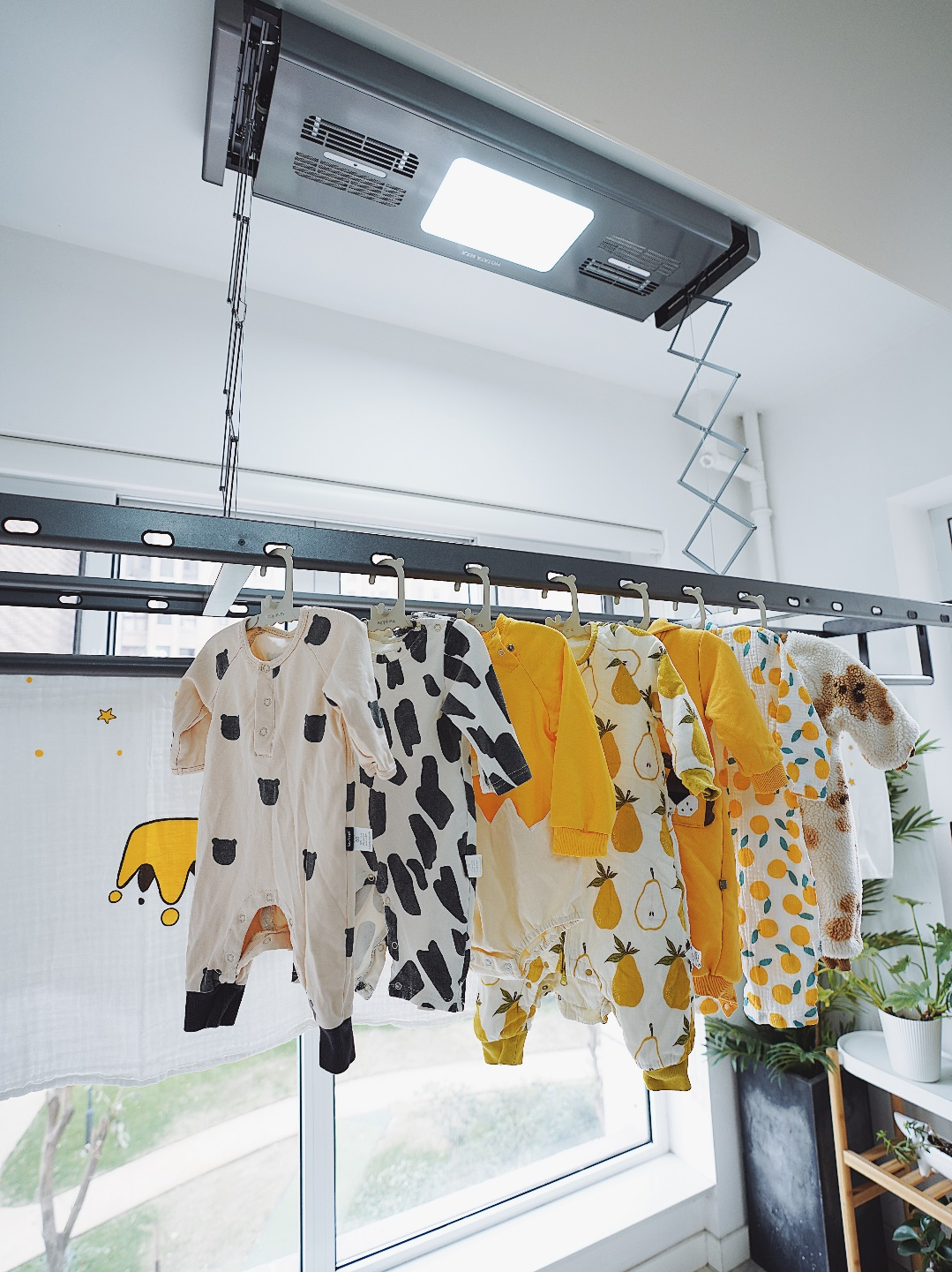 事实上,电动晾衣架不仅只有自动升降的功能,电动晾衣架还具有:照明、风干、热风干燥、消毒等非常实用的功能。